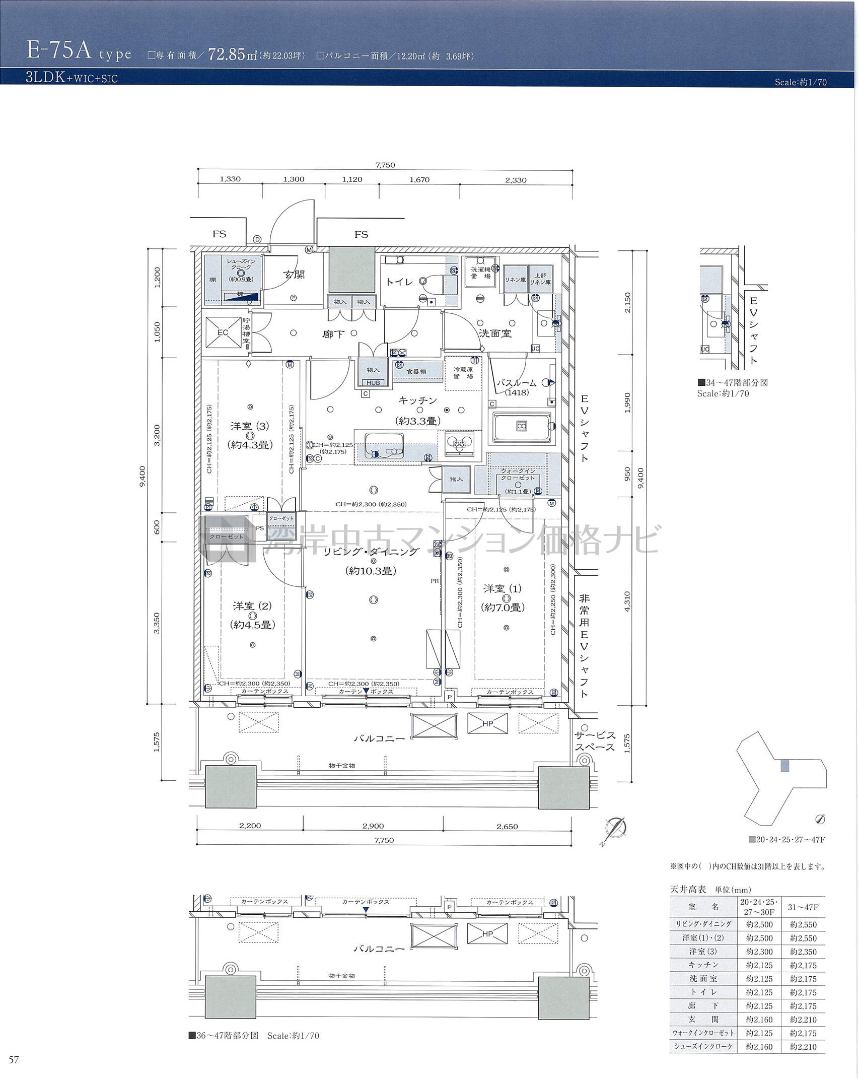 E-75A タイプ 間取り3LDK+α専有面積72.85m²