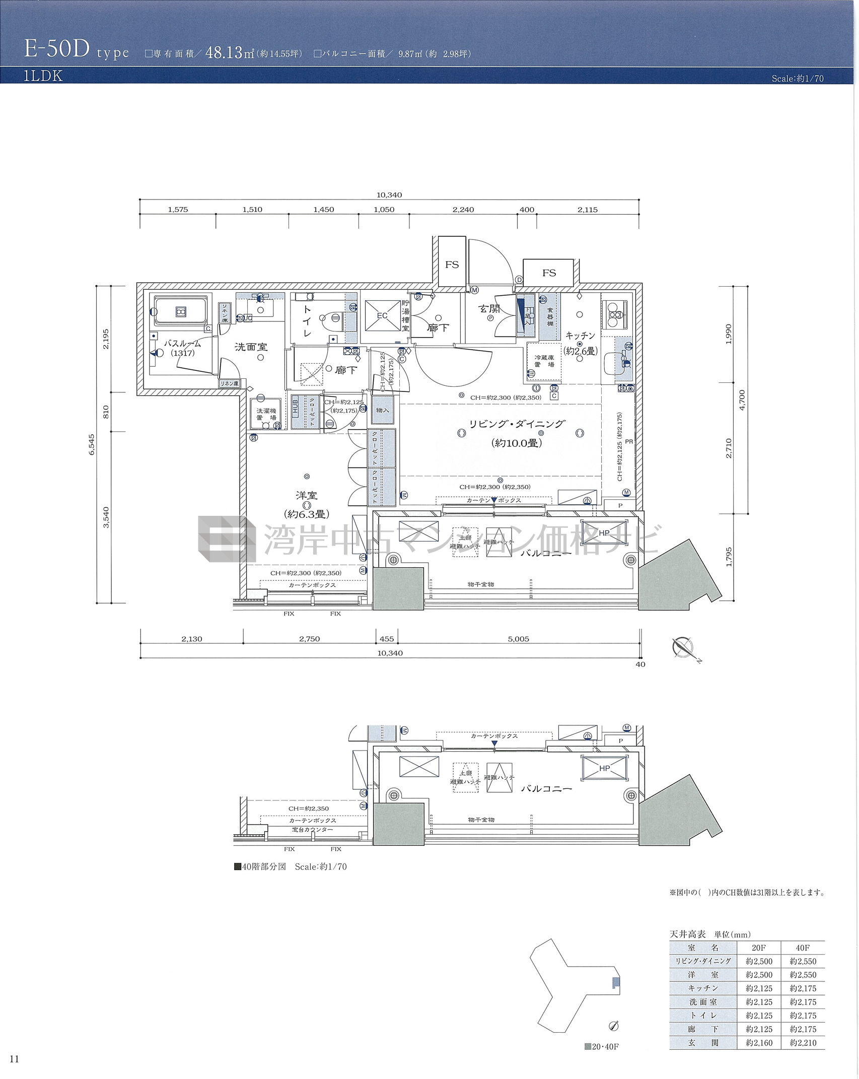 E-50D タイプ 間取り1LDK専有面積48.13m²