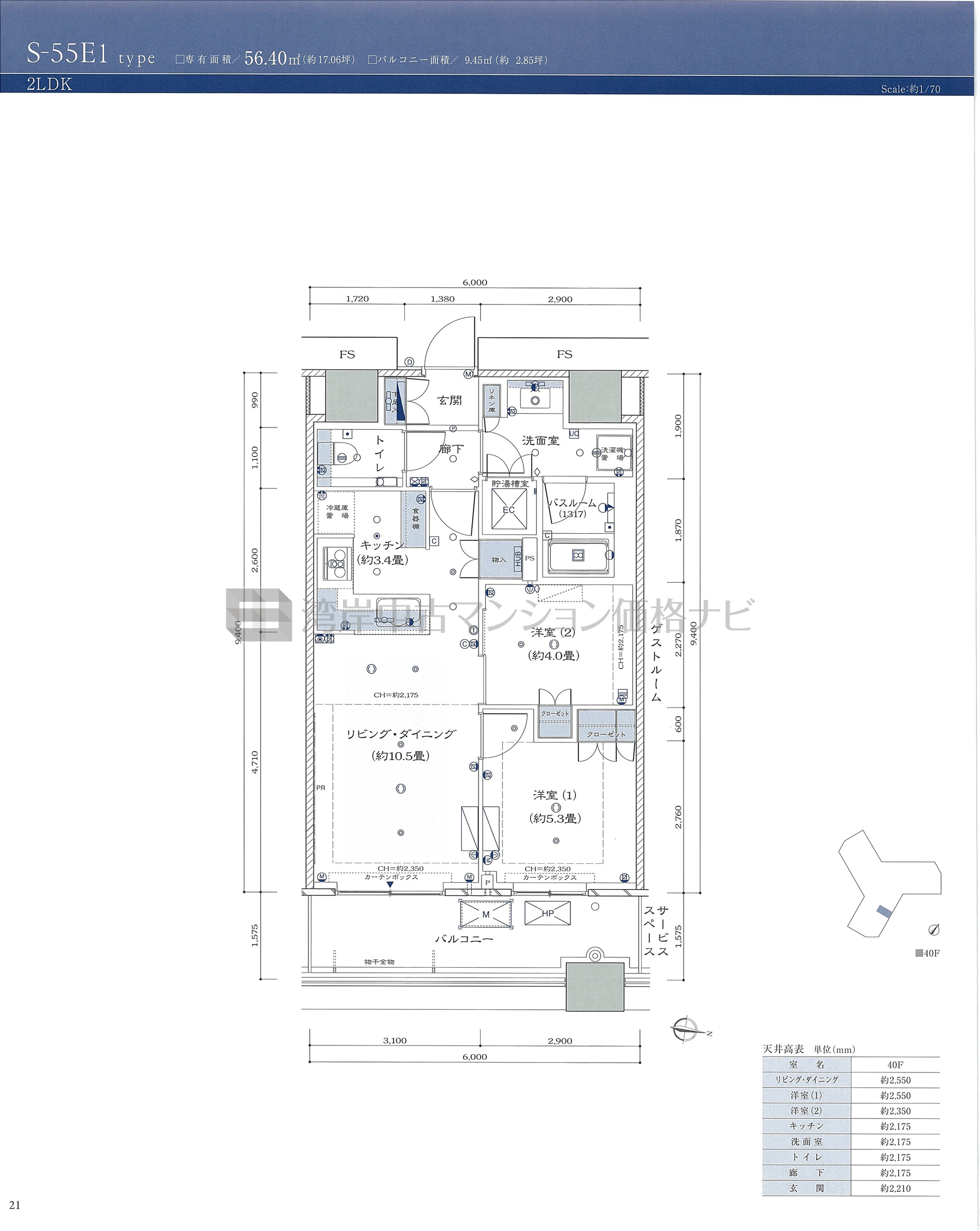 S-55E1 タイプ 間取り2LDK専有面積56.40m²