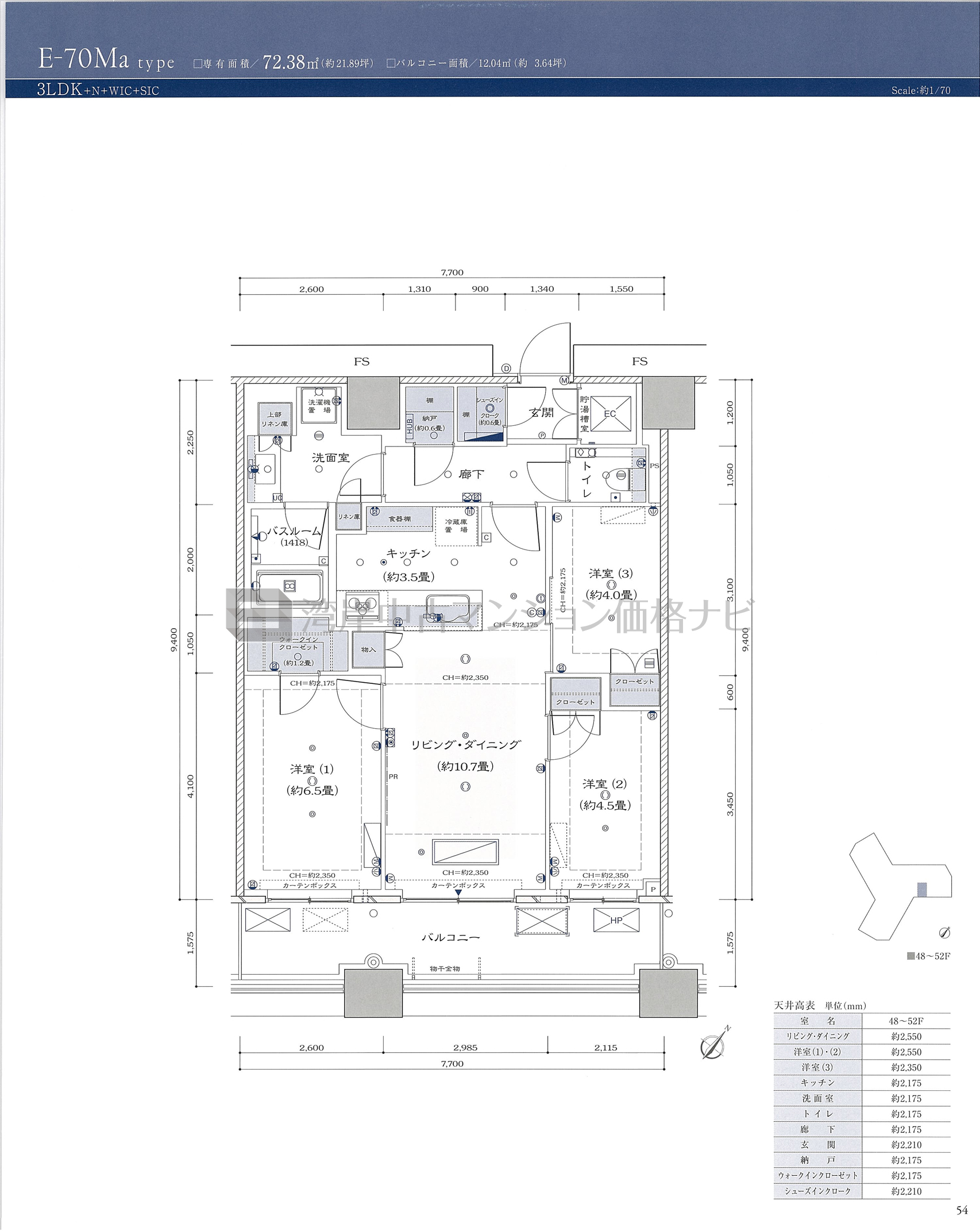 E-70Ma タイプ 間取り3LDK+α専有面積72.38m²
