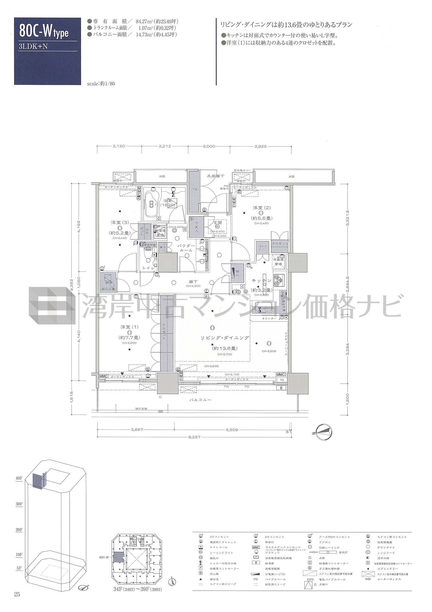 売出中住戸あり 80C-W タイプ 間取り3LDK専有面積84.27m²