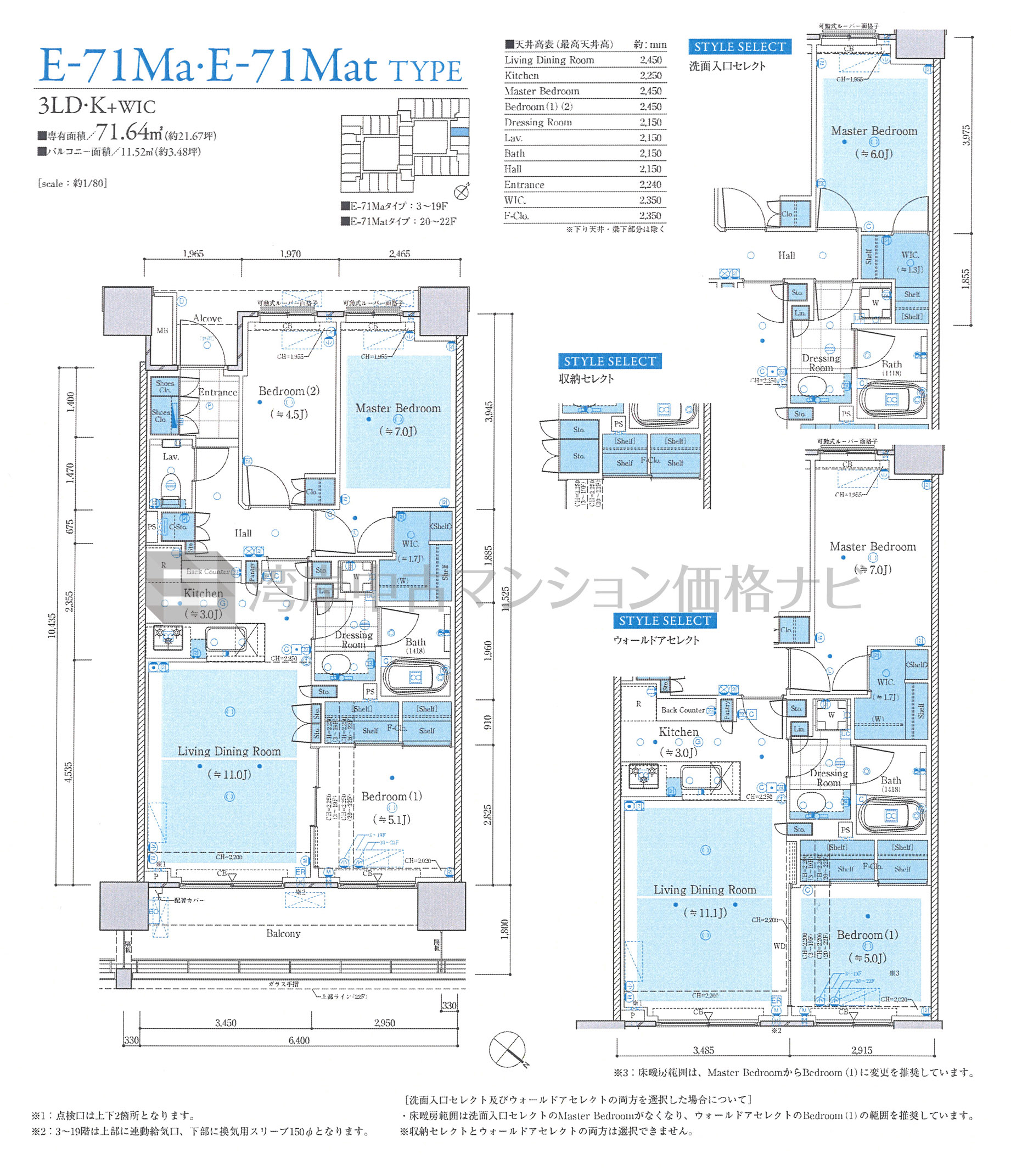 売出中住戸あり E-71Ma タイプ 間取り3LDK専有面積71.64m²