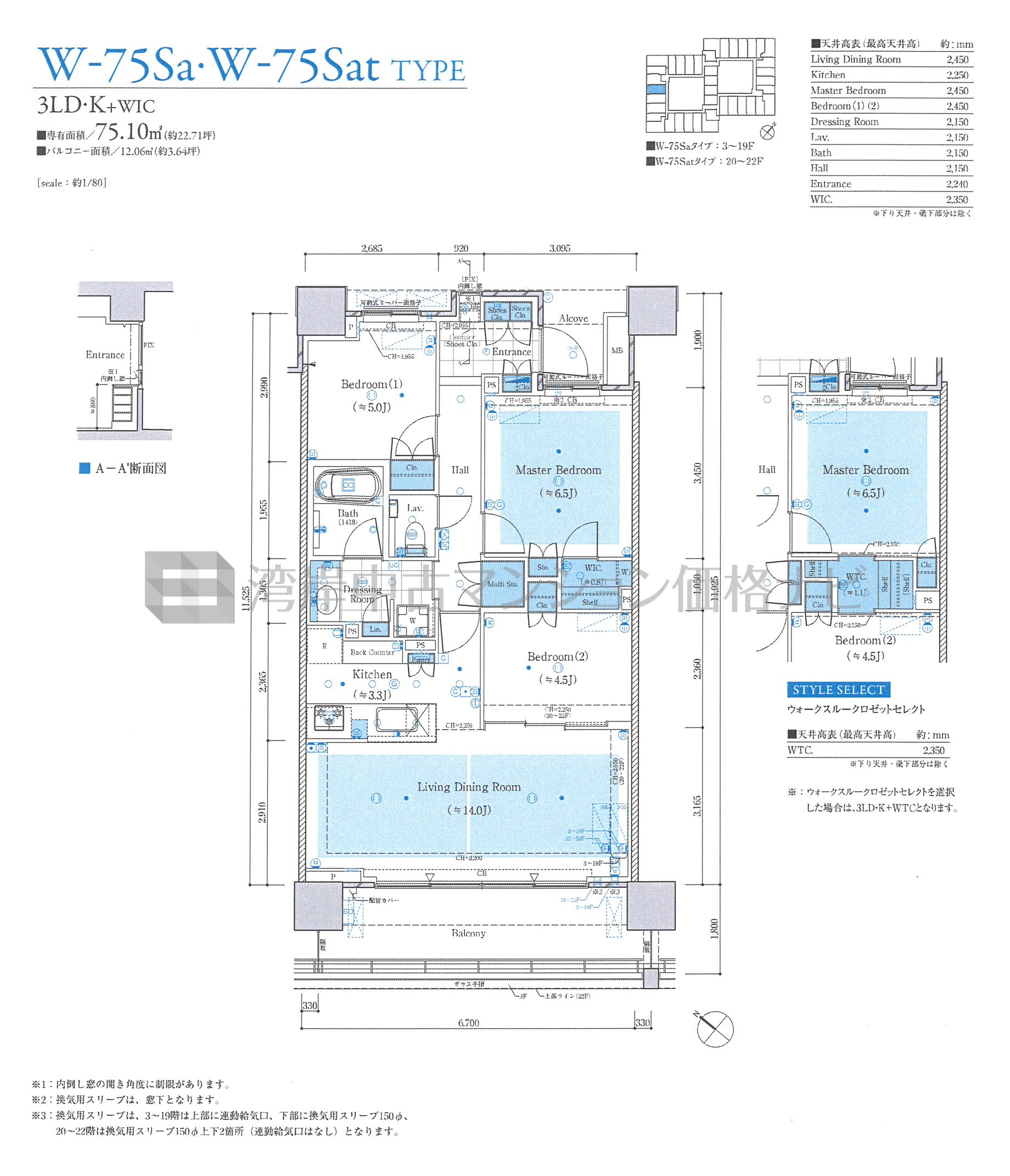 W-75Sat タイプ 間取り3LDK専有面積75.10m²