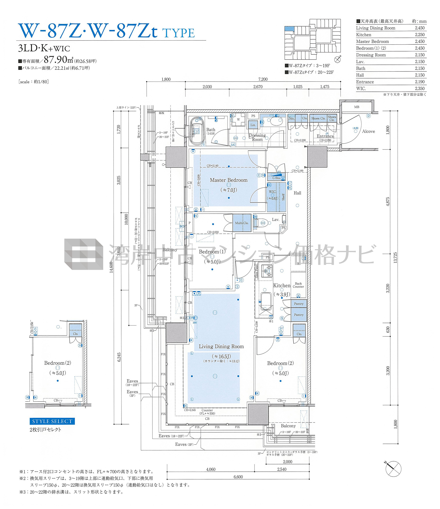 W-87Zt タイプ 間取り3LDK専有面積87.90m²