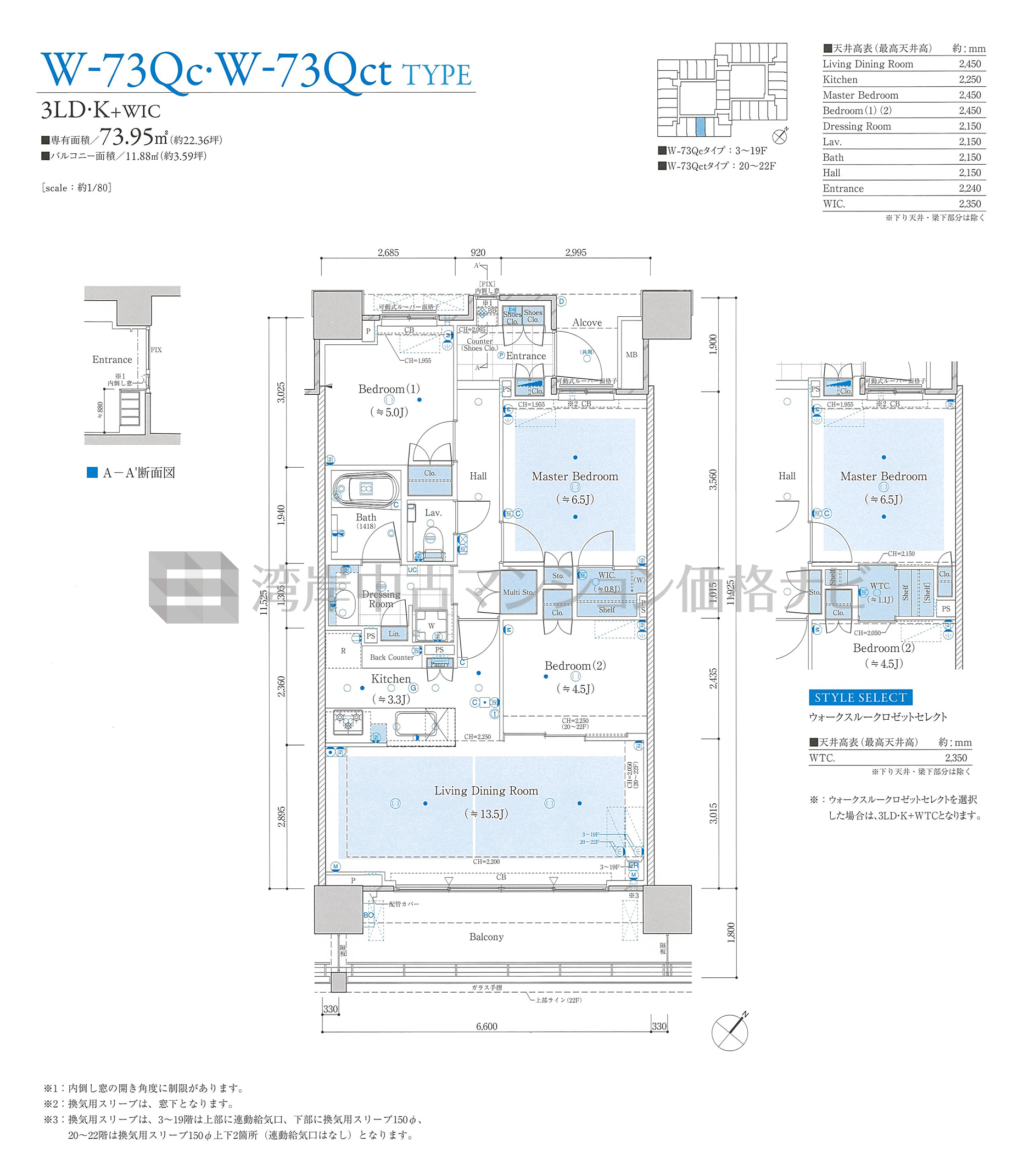 W-73Qct タイプ 間取り3LDK専有面積73.95m²