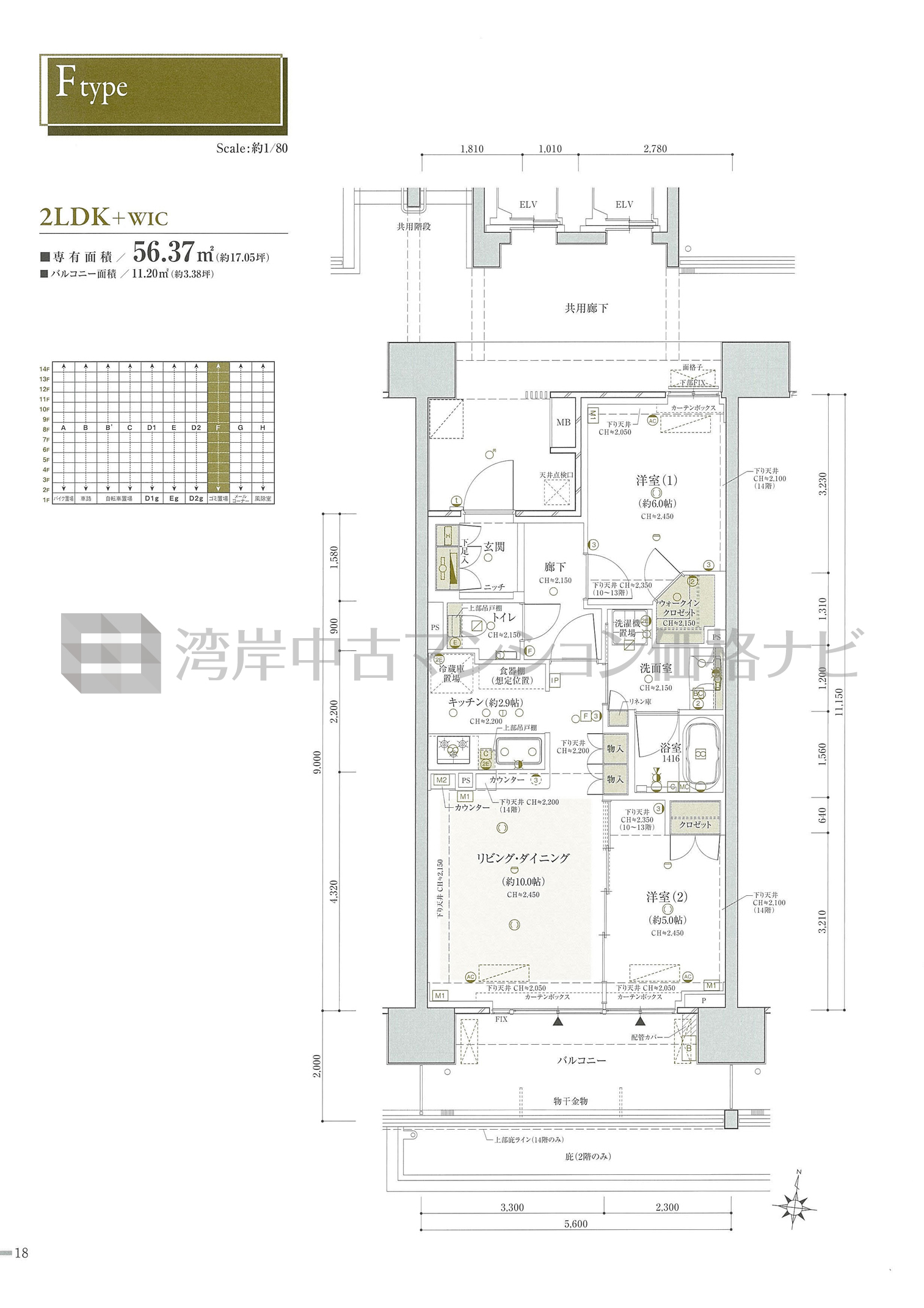 売出中住戸あり F タイプ 間取り2LDK専有面積56.37m²