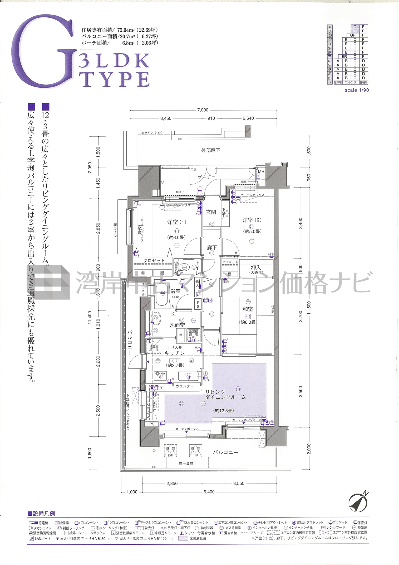 G タイプ 間取り3LDK専有面積75.04m²