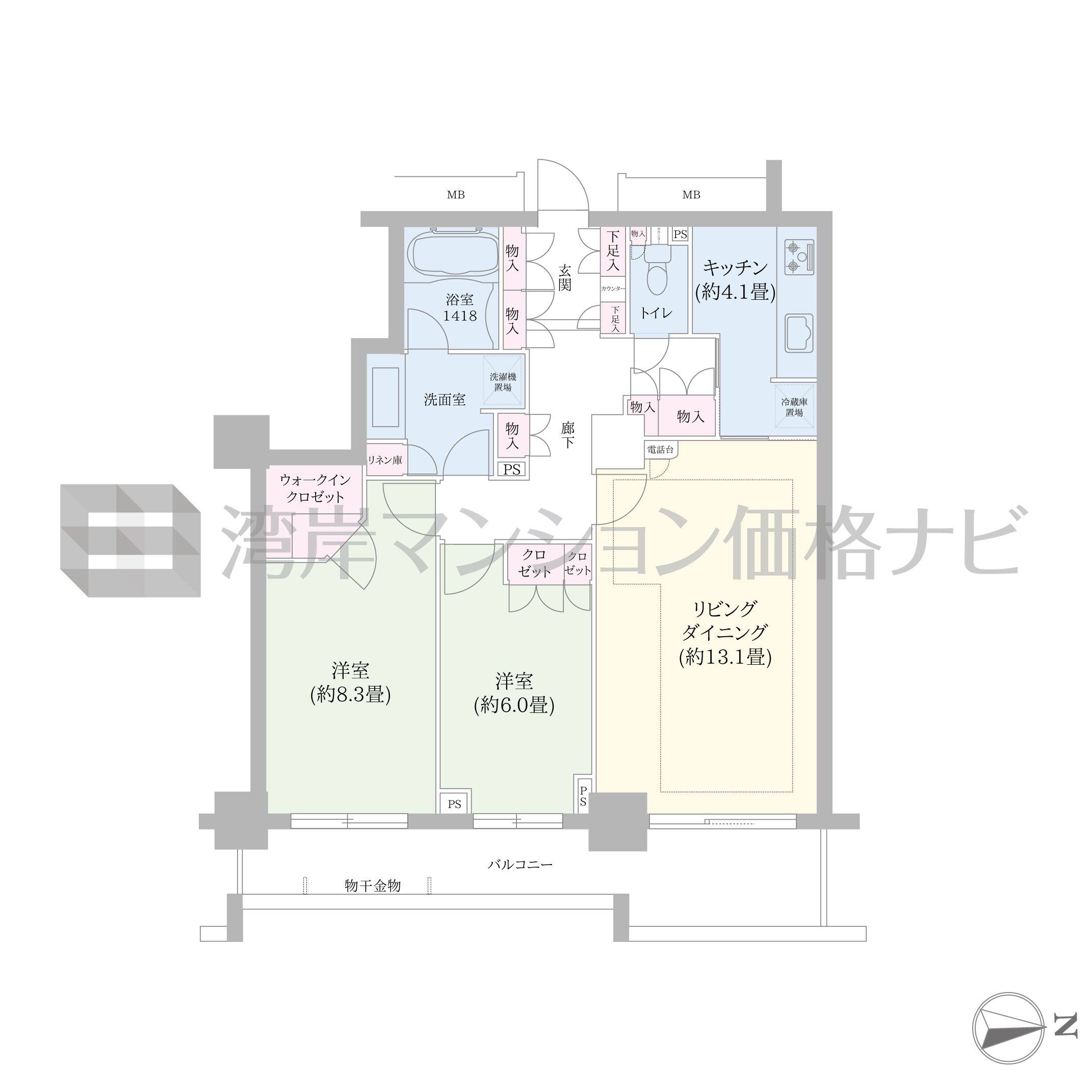 B6 タイプ 間取り2LDK専有面積78.40m²
