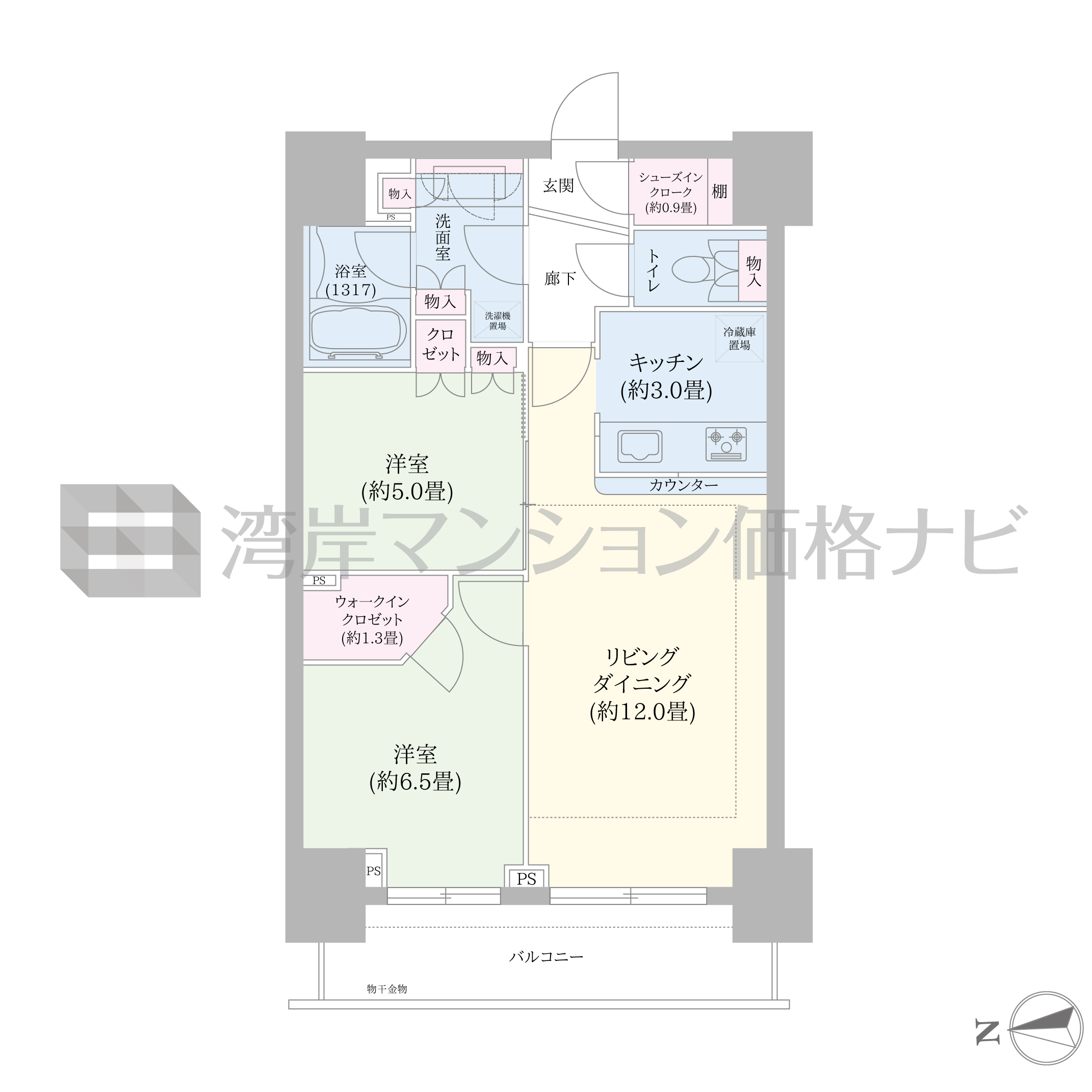 C-60Iw タイプ 間取り2LDK+α専有面積61.35m²