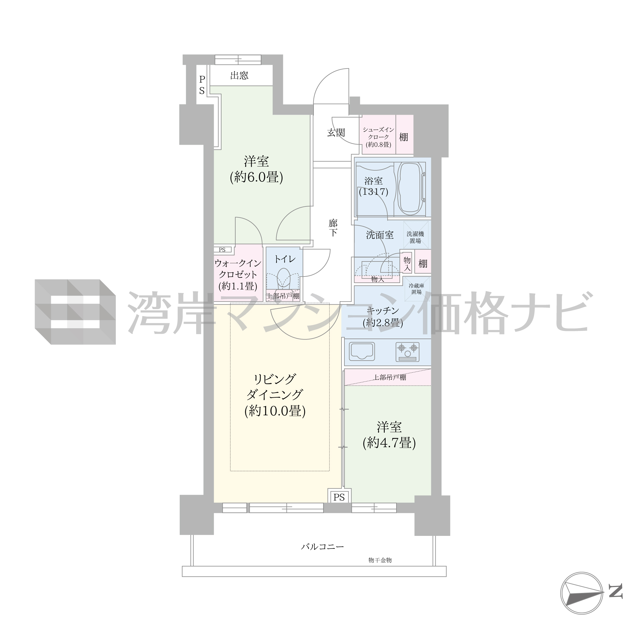 C-55Fe タイプ 間取り2LDK専有面積54.68m²