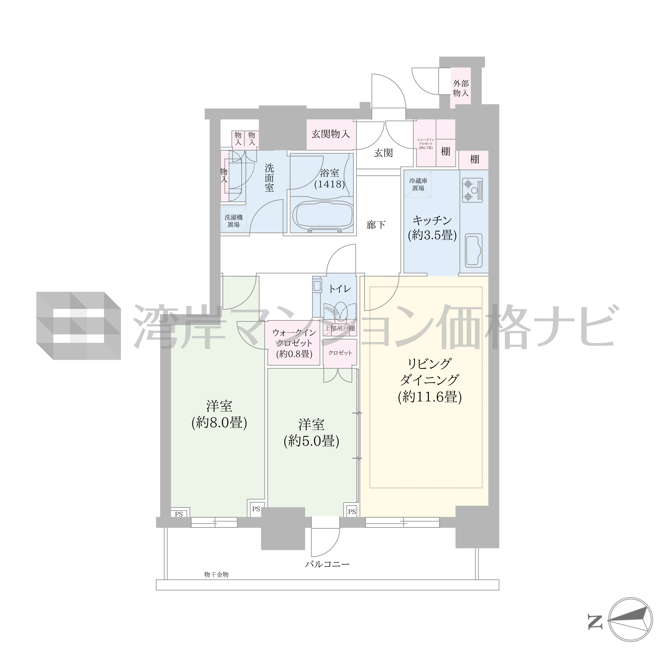 L-70Cw タイプ 間取り2LDK専有面積70.16m²