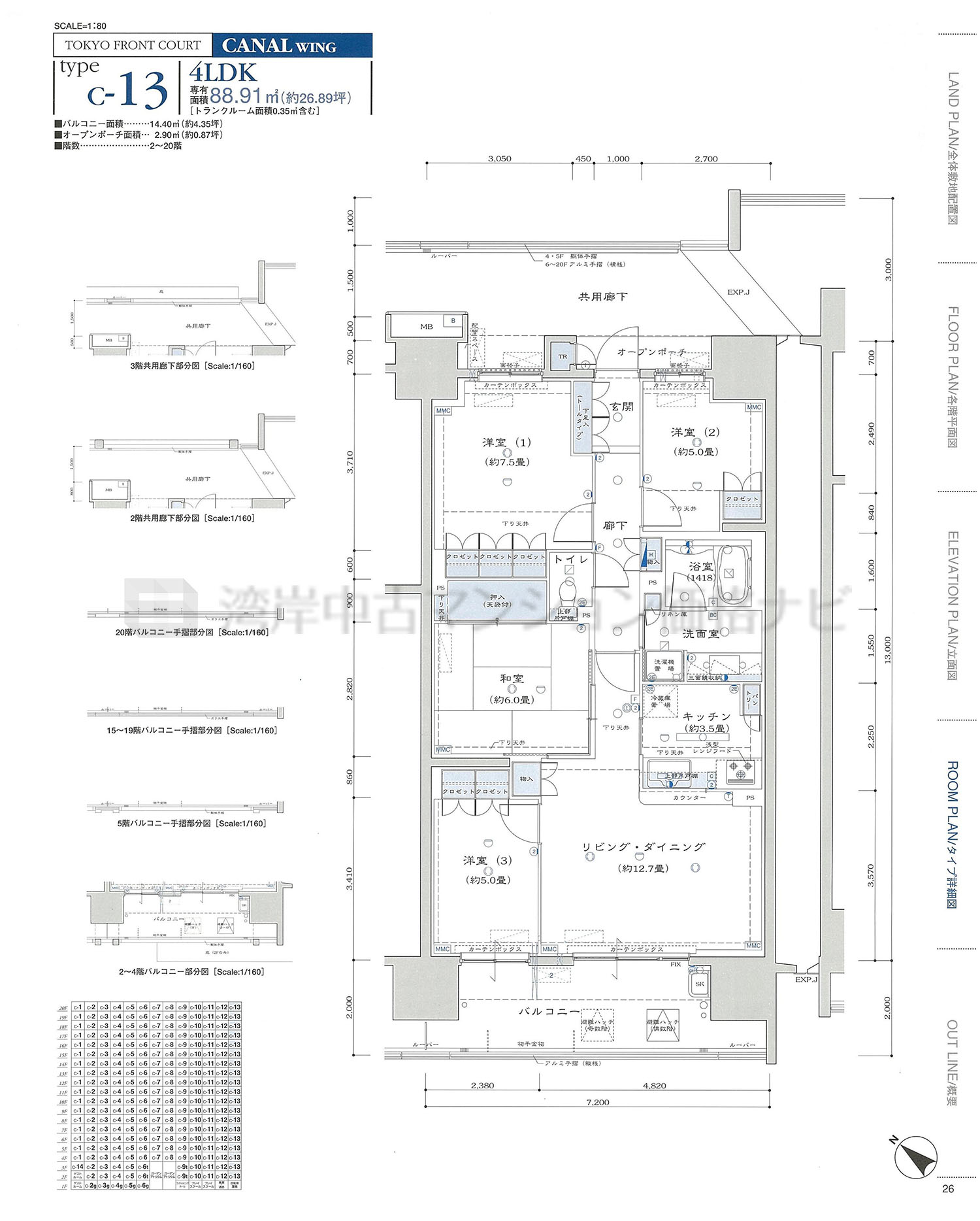 売出中住戸あり C-13 タイプ 間取り4LDK専有面積88.91m²