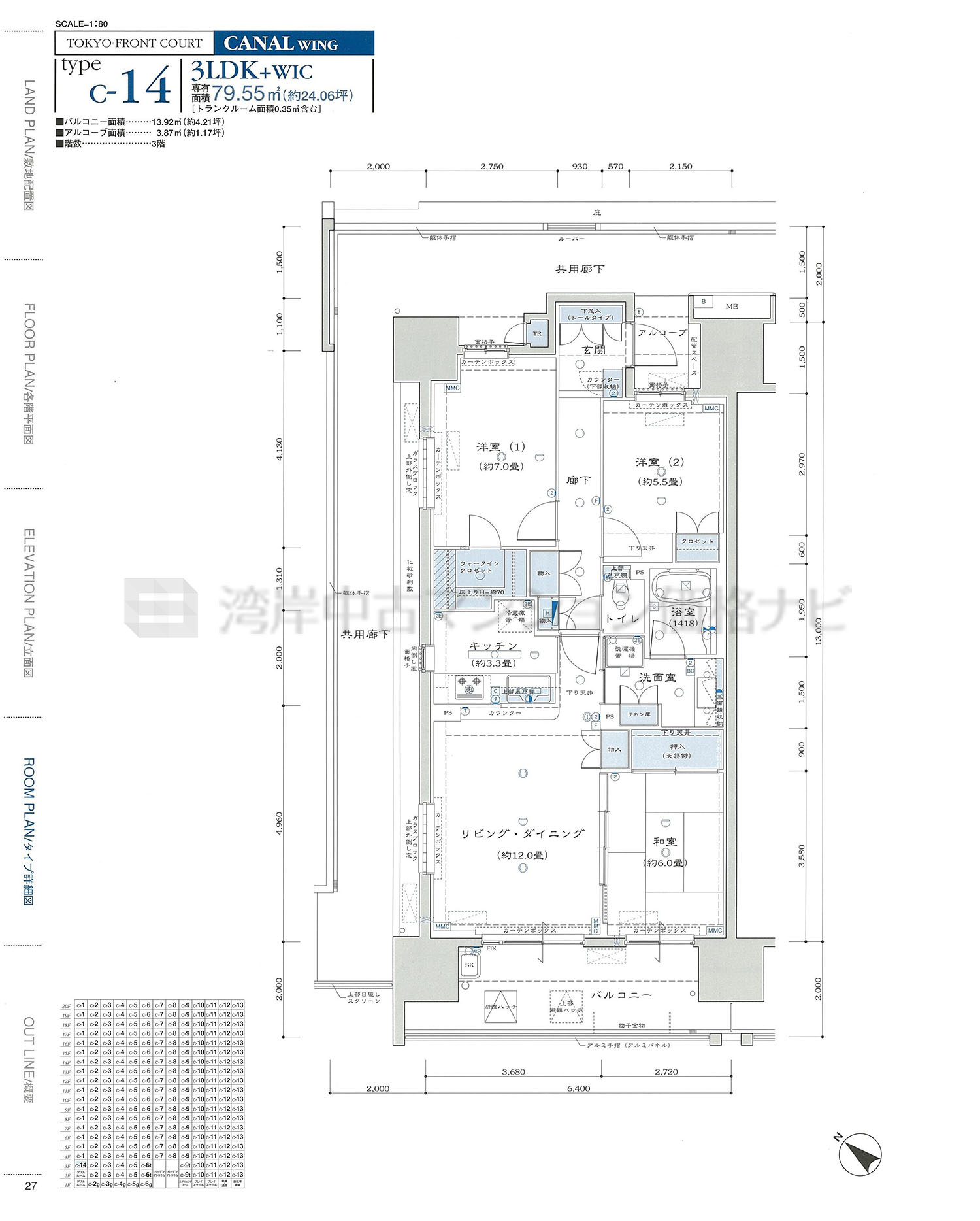 | 交通 | 東京メトロ有楽町線「豊洲」駅 徒歩4分 /新交通ゆりかもめ「豊洲」駅 徒歩6分 | 構造 | (A・B・C・D棟)鉄骨鉄筋コンクリート造・地上20階塔屋1階建、(E・F棟)鉄筋コンクリート造・地上14階建 | ||