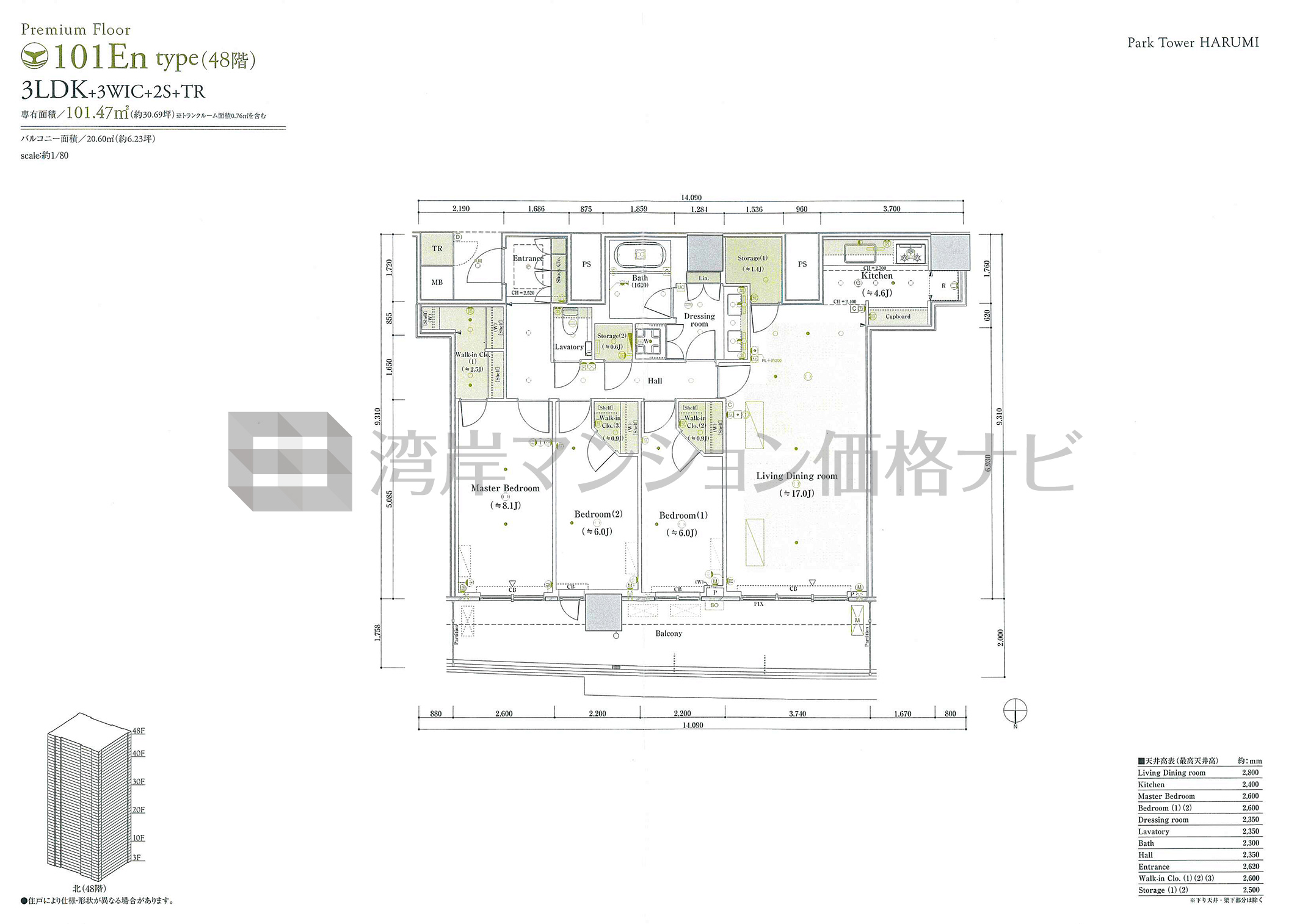 | 交通 | 東京メトロ有楽町線「月島」駅 徒歩12分 /都営大江戸線「月島」駅 徒歩12分 | 構造 | 鉄筋コンクリート造一部鉄骨造・地上48階地下1階 | ||