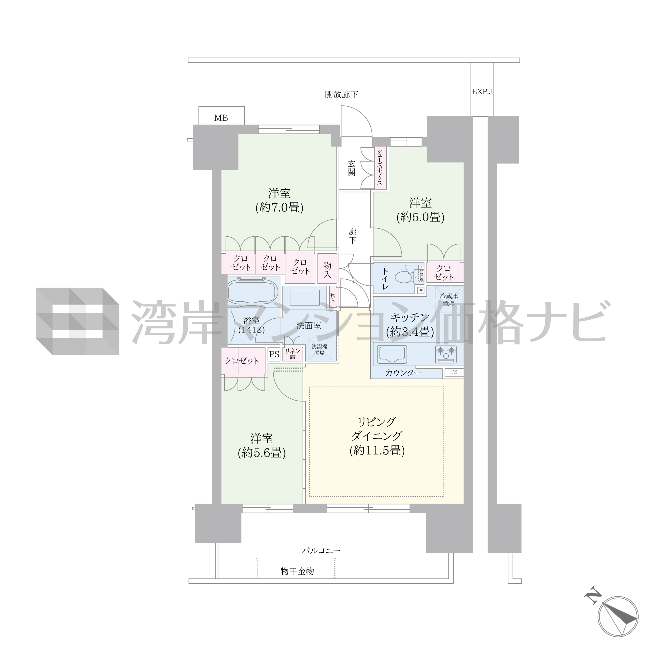 売出中住戸あり 70G タイプ 間取り3LDK専有面積70.68m²
