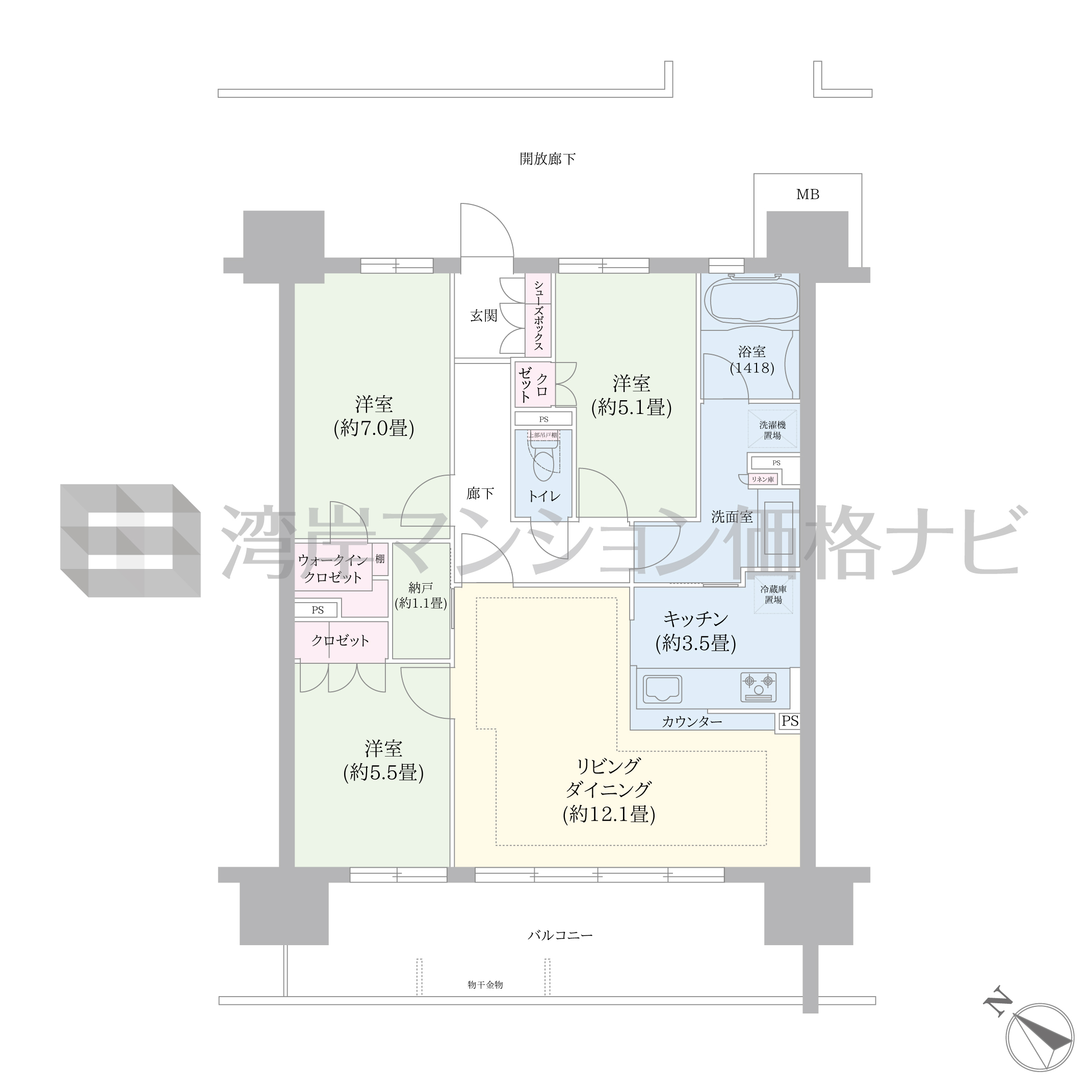 売出中住戸あり 77U タイプ 間取り3LDK専有面積77.90m²