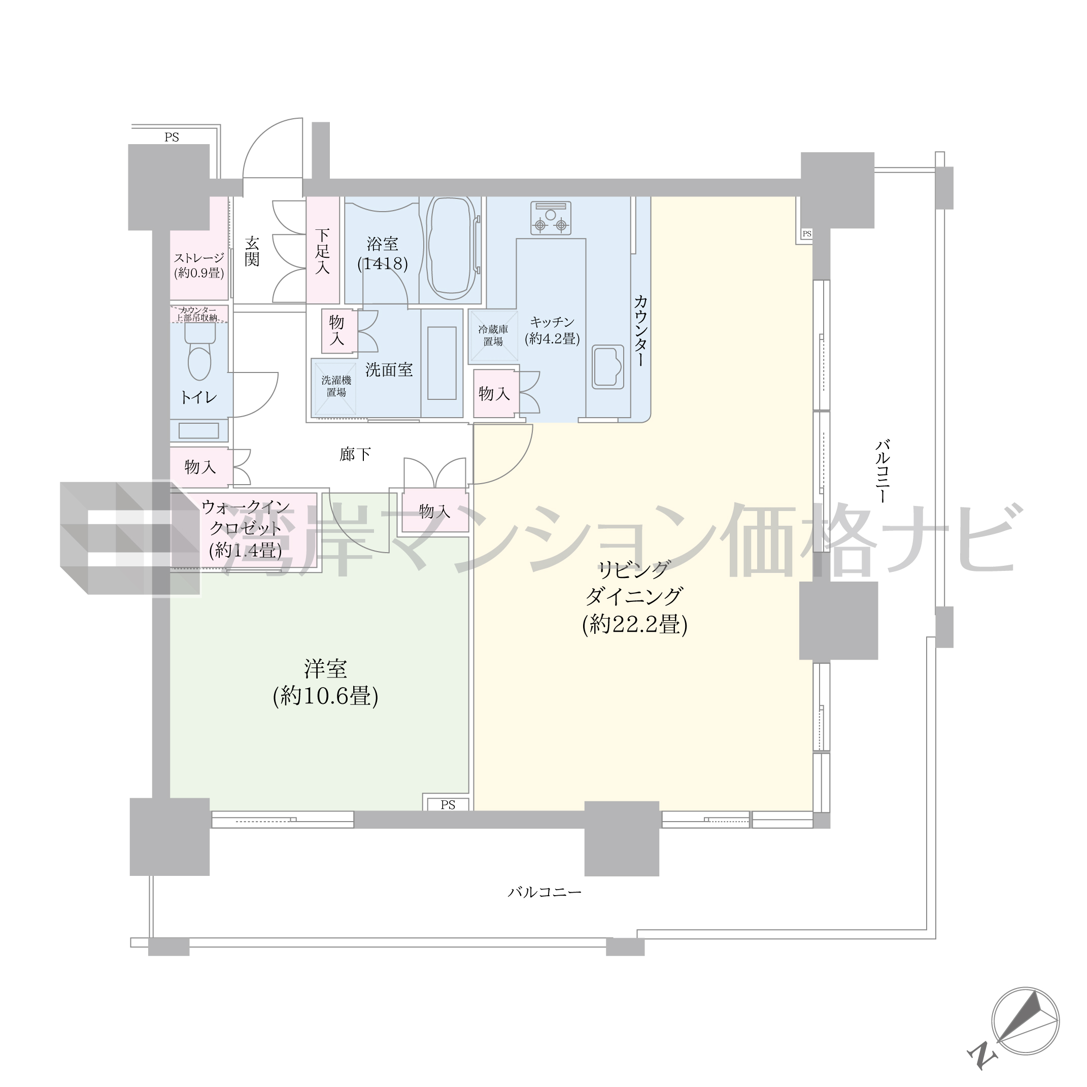 | リビング・ダイニング広さ | 22.2帖 |