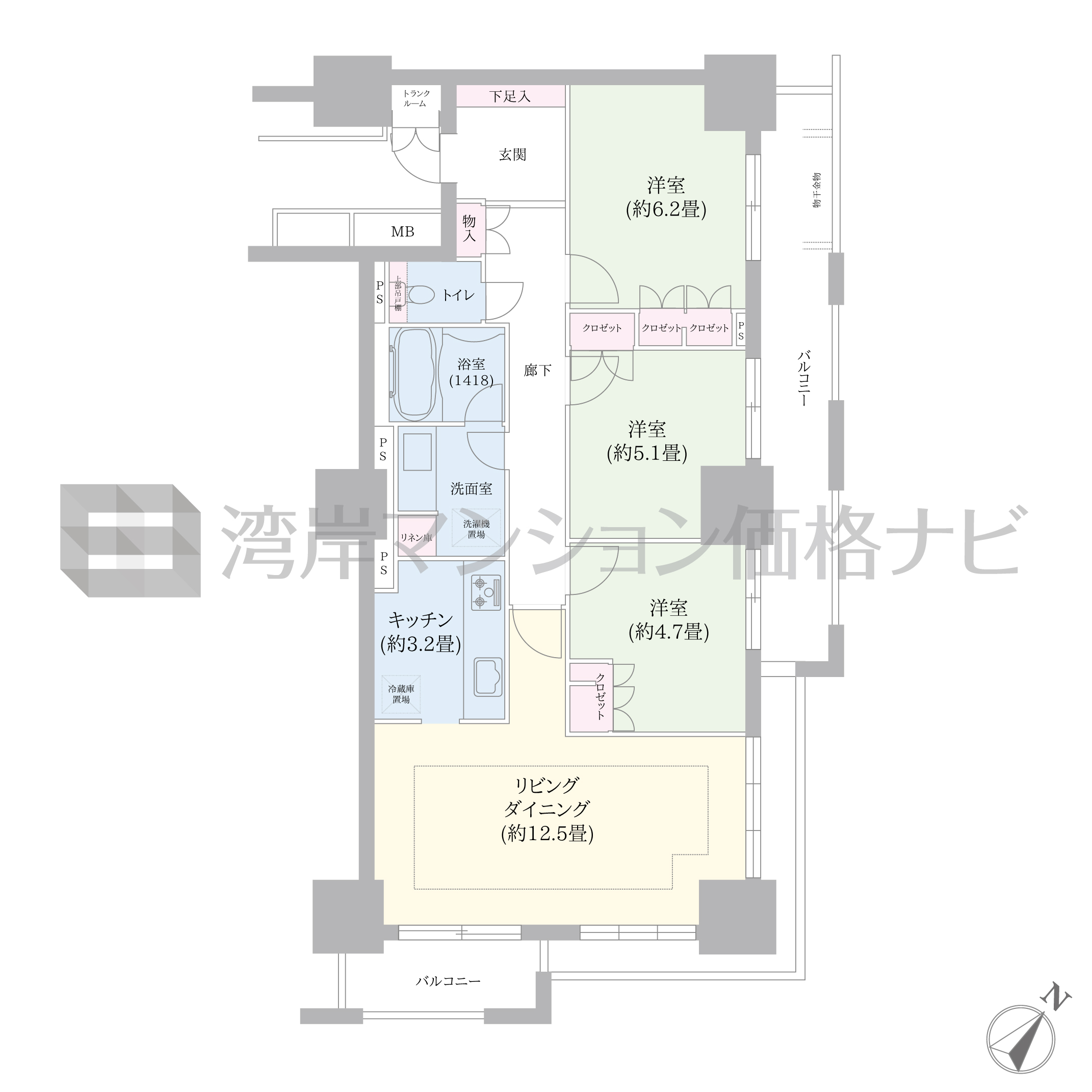 D4 タイプ 間取り3LDK専有面積75.49m²