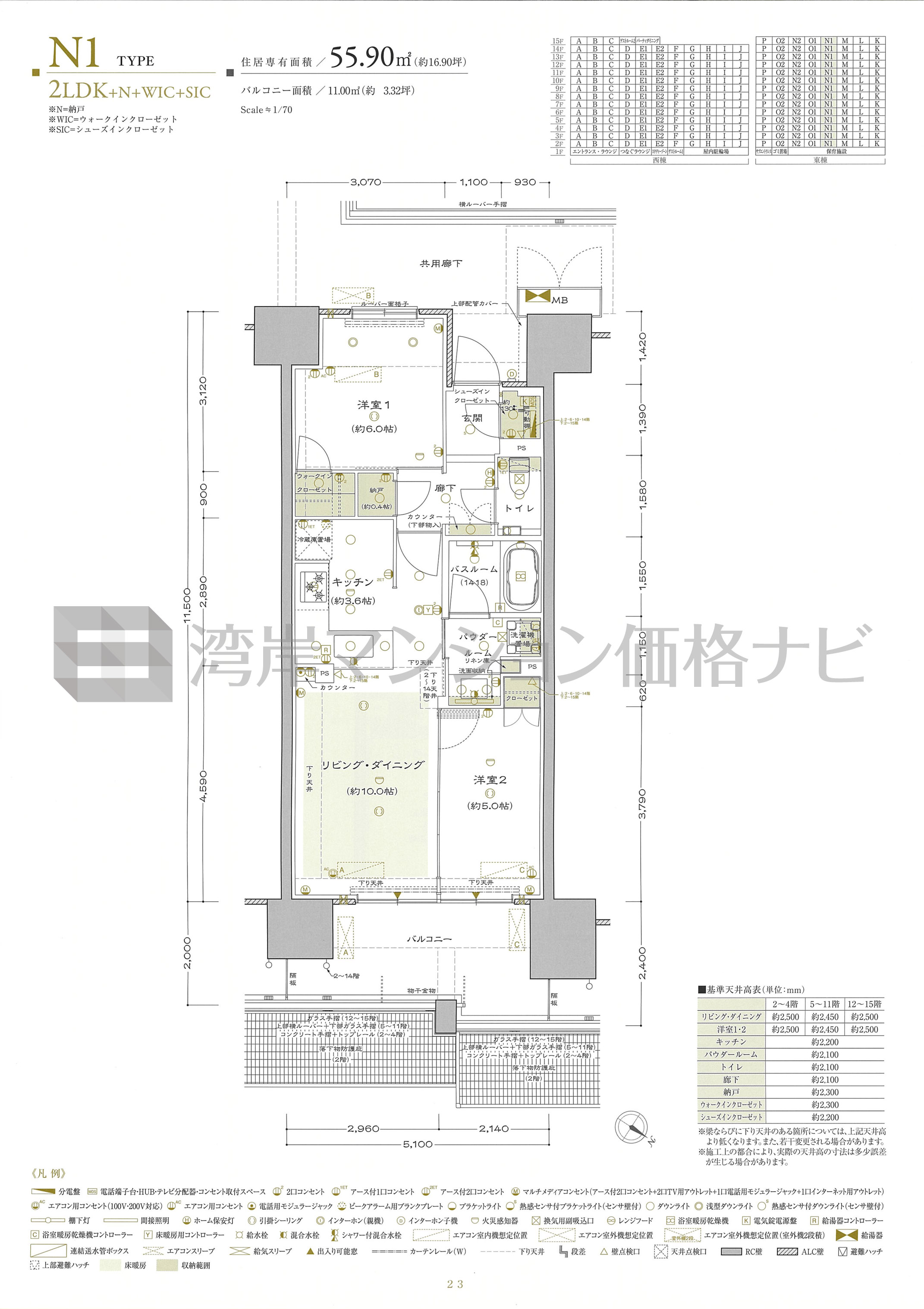 N1 タイプ 間取り2LDK専有面積55.90m²