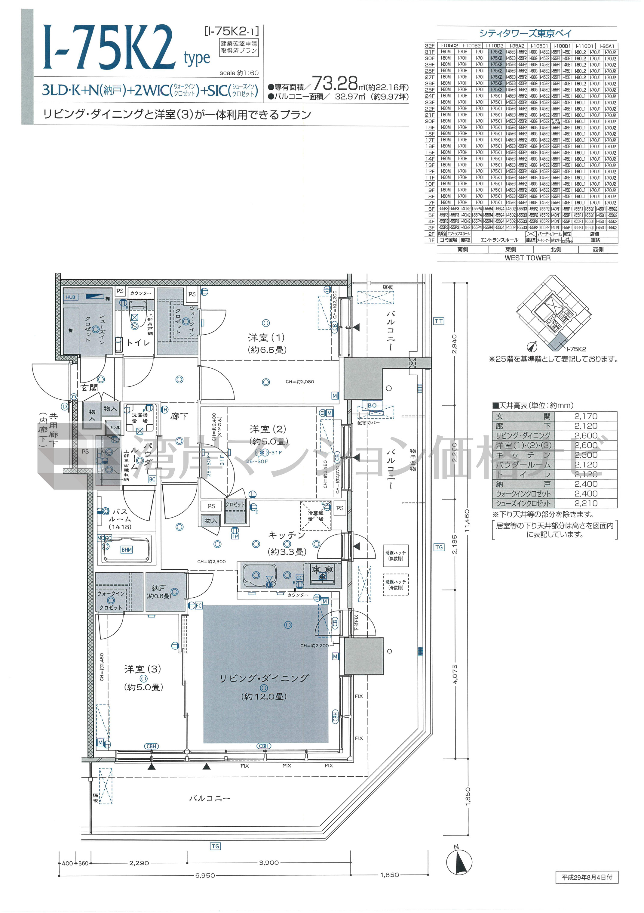I-75K2 タイプ 間取り3LDK専有面積73.28m²