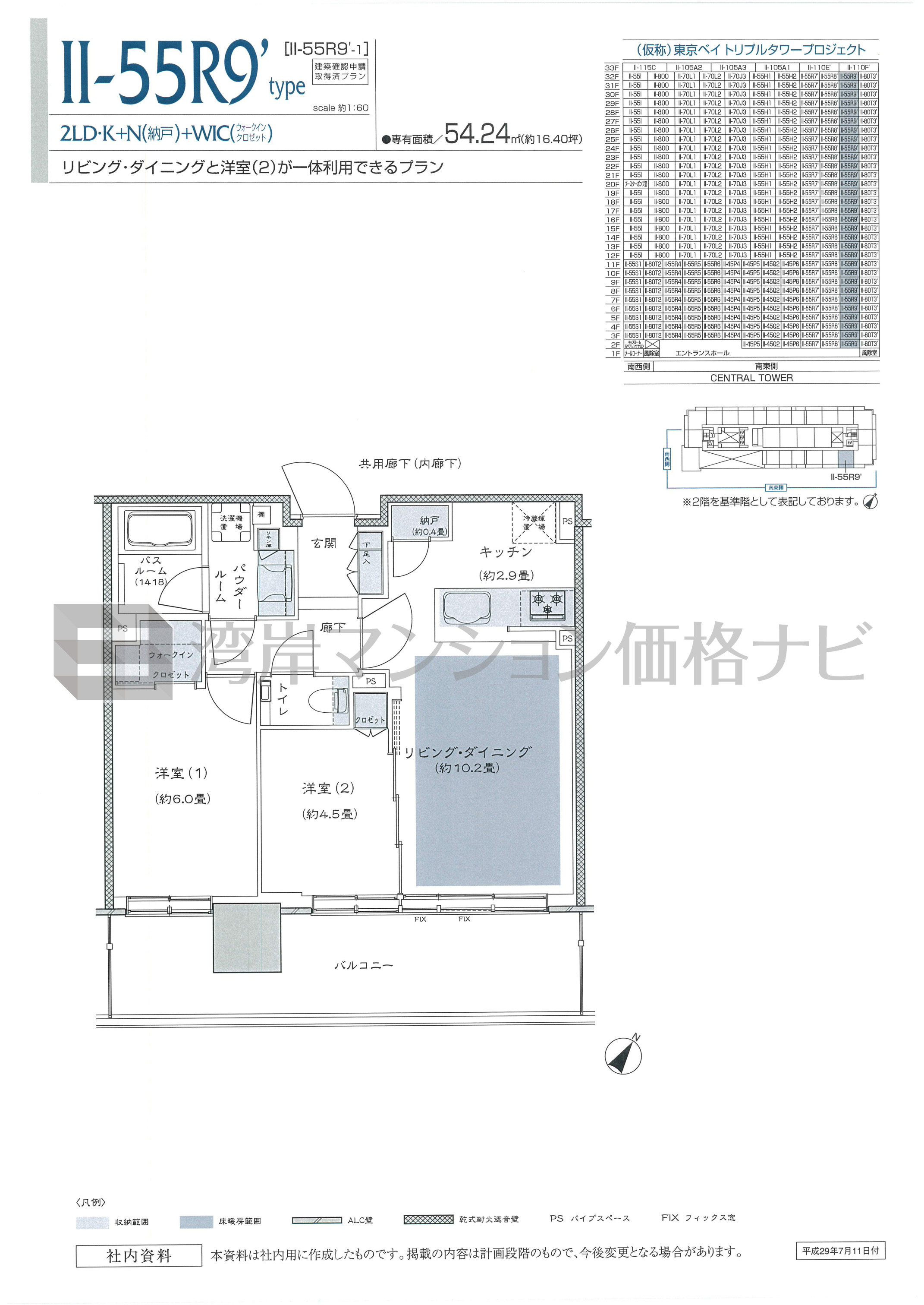 Ⅱ-55R9' タイプ 間取り2LDK専有面積54.24m²