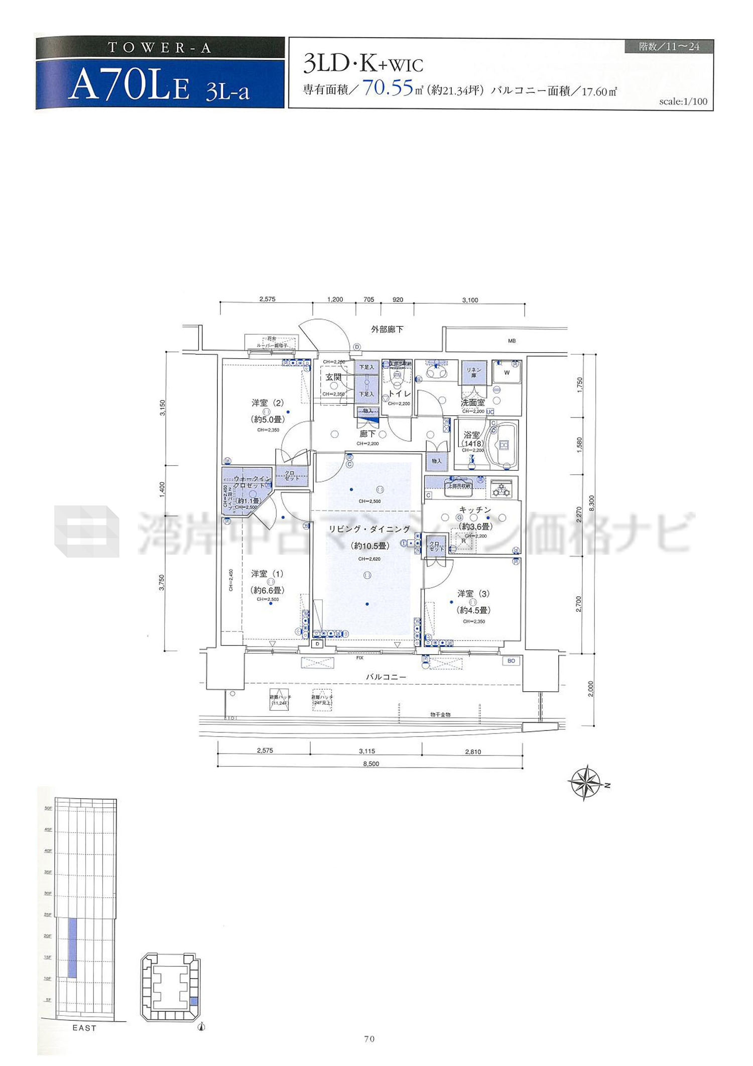 売出中住戸あり A70LE タイプ 間取り3LDK専有面積70.55m²