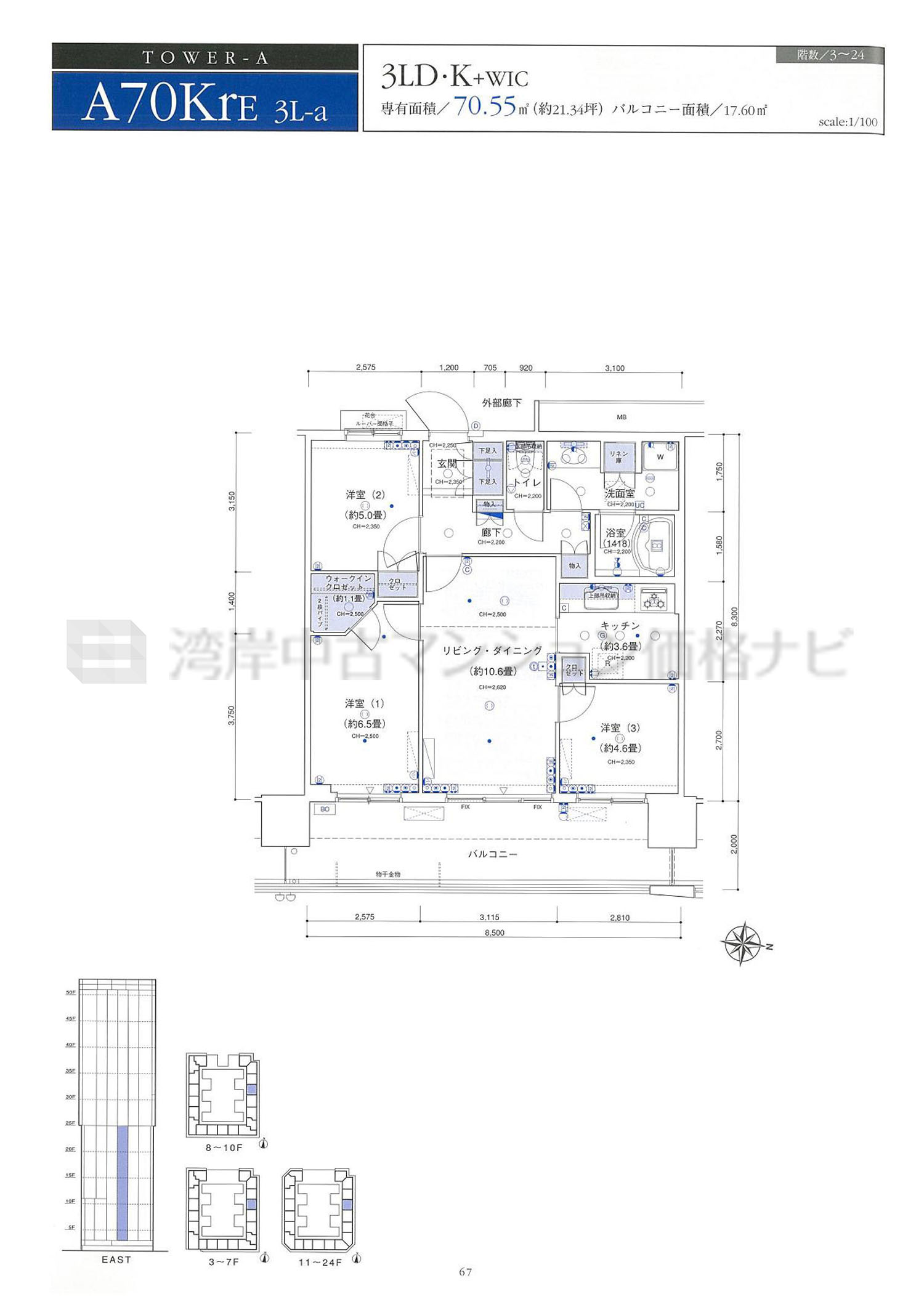 売出中住戸あり A70KRE タイプ 間取り3LDK専有面積70.55m²
