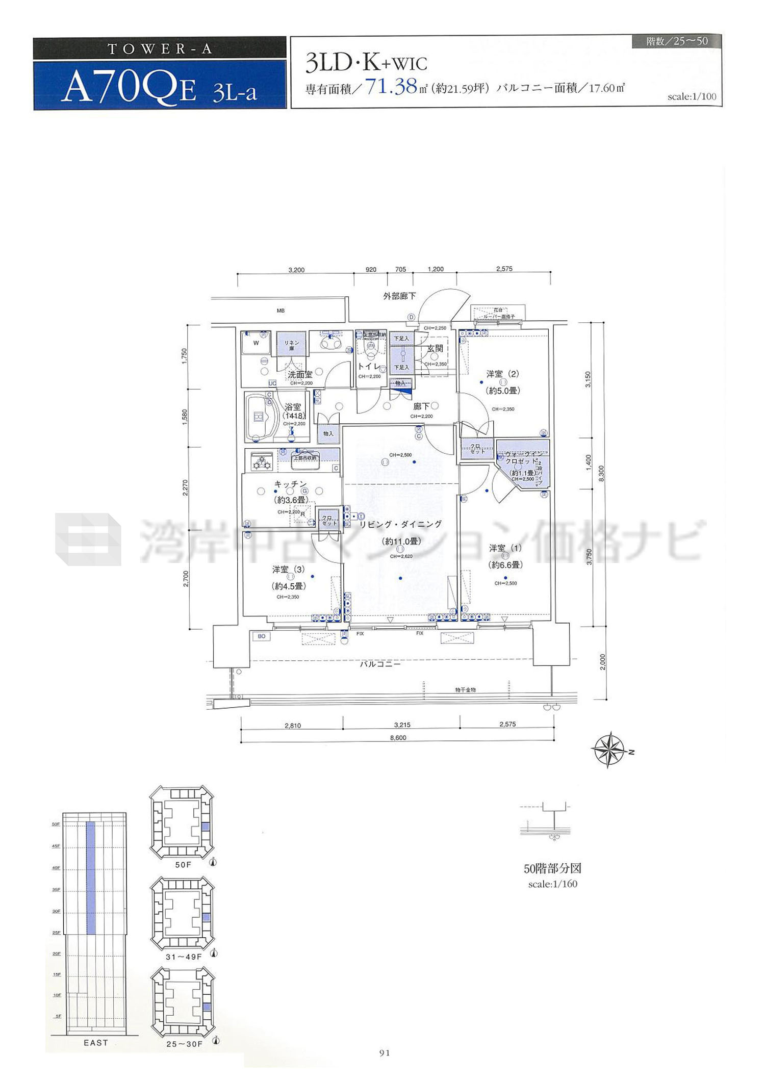 売出中住戸あり A70QE タイプ 間取り3LDK専有面積71.38m²