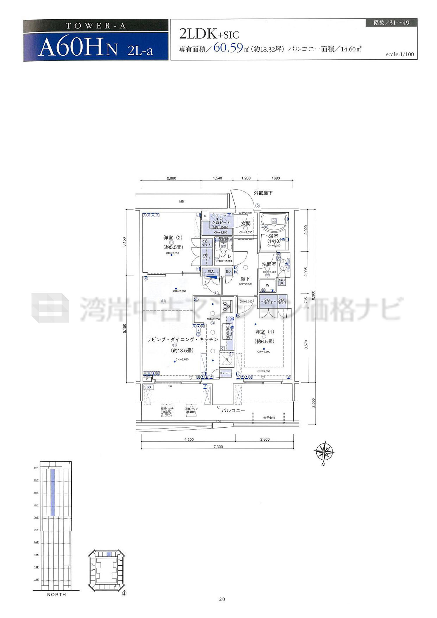 売出中住戸あり A60HN タイプ 間取り2LDK専有面積60.59m²