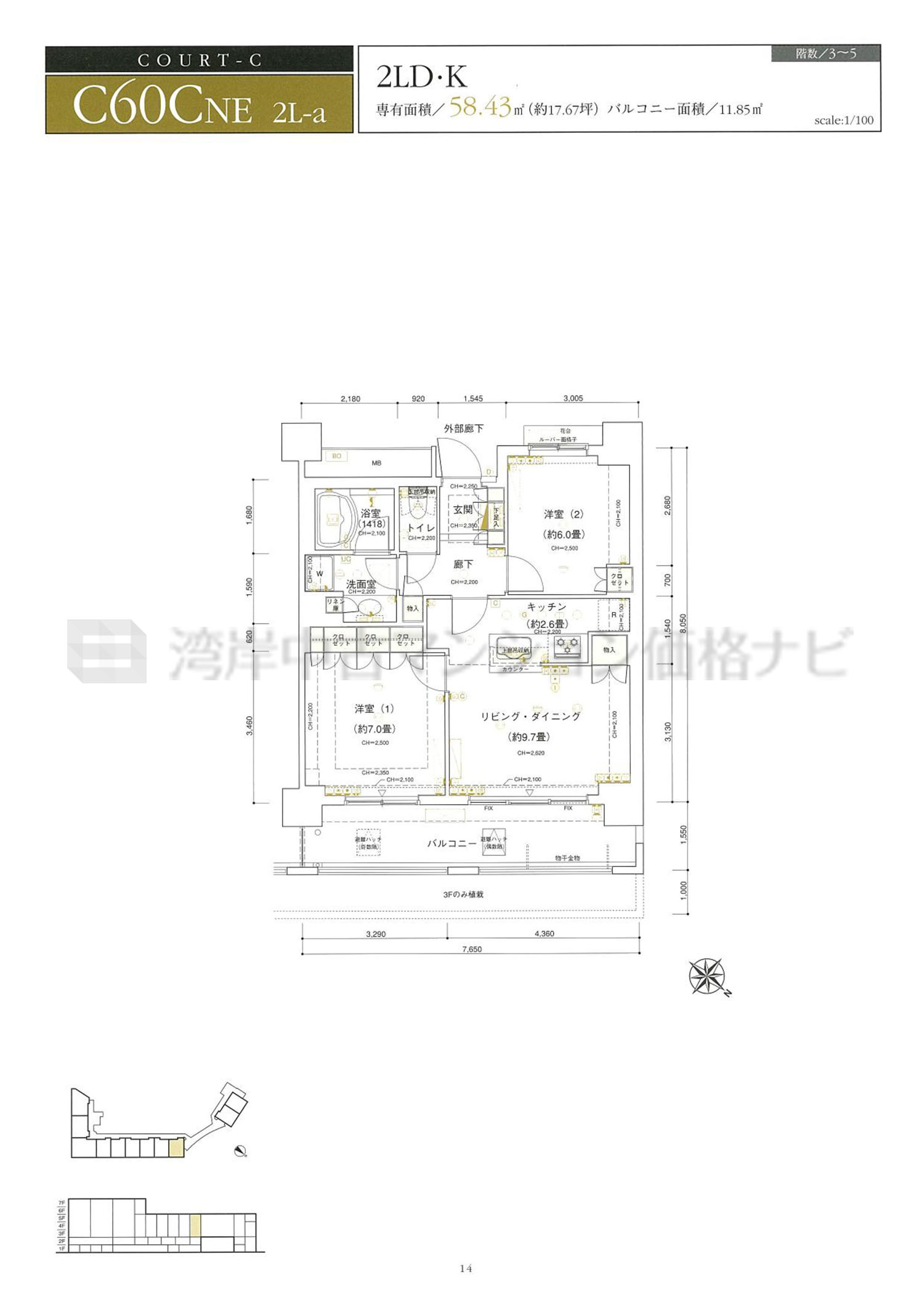 売出中住戸あり C60-CNE タイプ 間取り2LDK専有面積58.43m²